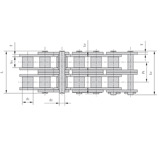 雙排滾子鏈的設(shè)計能夠提供更大的傳動面積和負(fù)載承載能力,相比于單排滾子鏈,雙排滾子鏈可以承受更高的拉伸力和扭矩。它通常用于重載傳動系統(tǒng),例如大型機(jī)械設(shè)備、懸掛式輸送系統(tǒng)、生產(chǎn)線等。